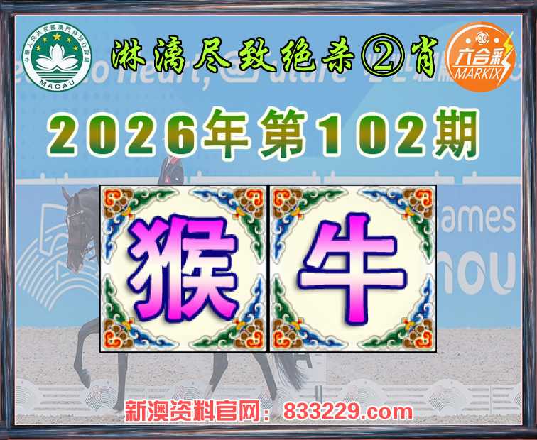 102期:『淋漓尽致』  ♣️绝杀②肖 ♣️【猴.牛】开:猪20